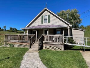 This 1.5 story vinyl sided home features a living room, kitchen/dining combo, 2 bedrooms and bath on main level with additional/bonus room upstairs that could be a 3rd bedroom. Furnace for heat, metal roof, vinyl tilt windows, lg. wrap around deck, ramp for handicap access and public water & sewer. Home sits on a .23 ac. lot with a conc. drive and is surrounded by flowers & shrubbery. Also on this lot is a sm. block building and a wood sided storage building. Zoned R-2. Note: Potential buyers will have from Oct. 13th until Oct. 22nd to conduct a lead-based paint contamination test if they so desire.